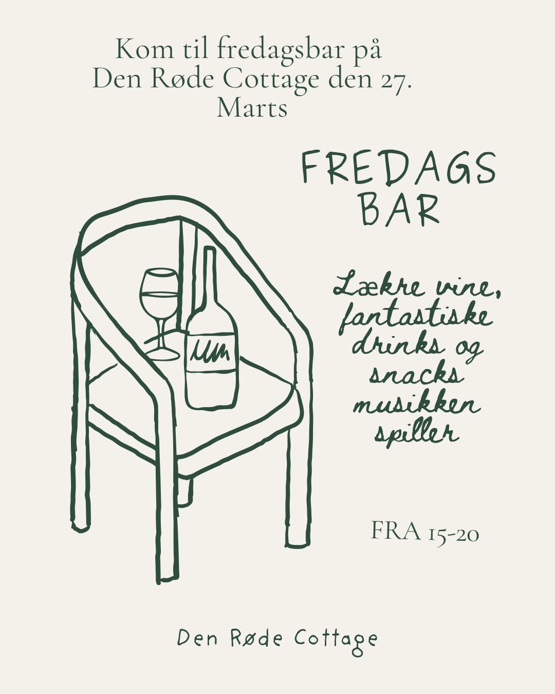 Fredagsbar på Den Røde Cottage. Fredag 27. marts fra 15 til 20.